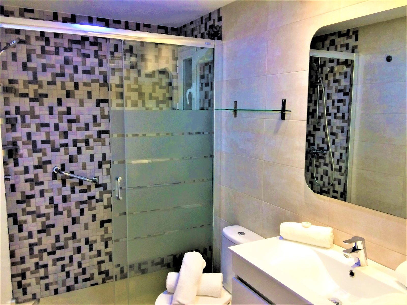 Además, conexión inalámbrica a internet y vistas al mar. Todos los apartamentos disponen de terraza privada, salón comedor, cocina (horno, fogones, lavadora, microondas y frigorífico), baño, aseo y dormitorio.